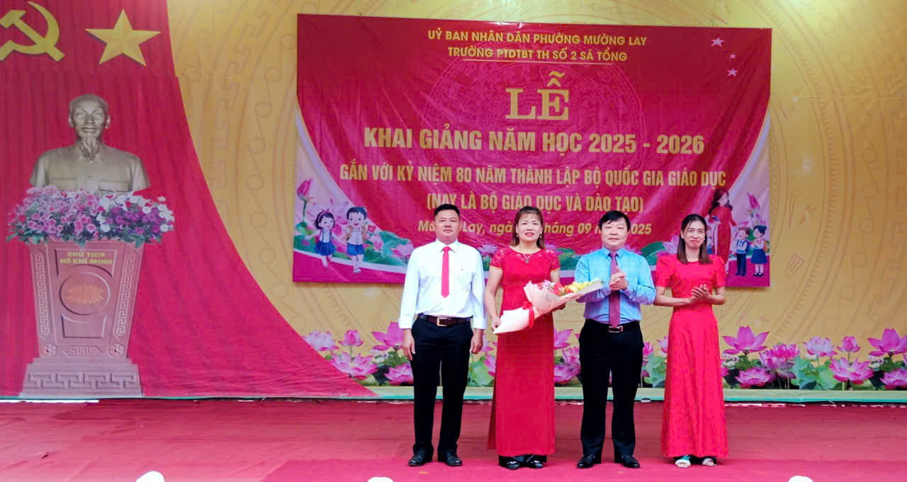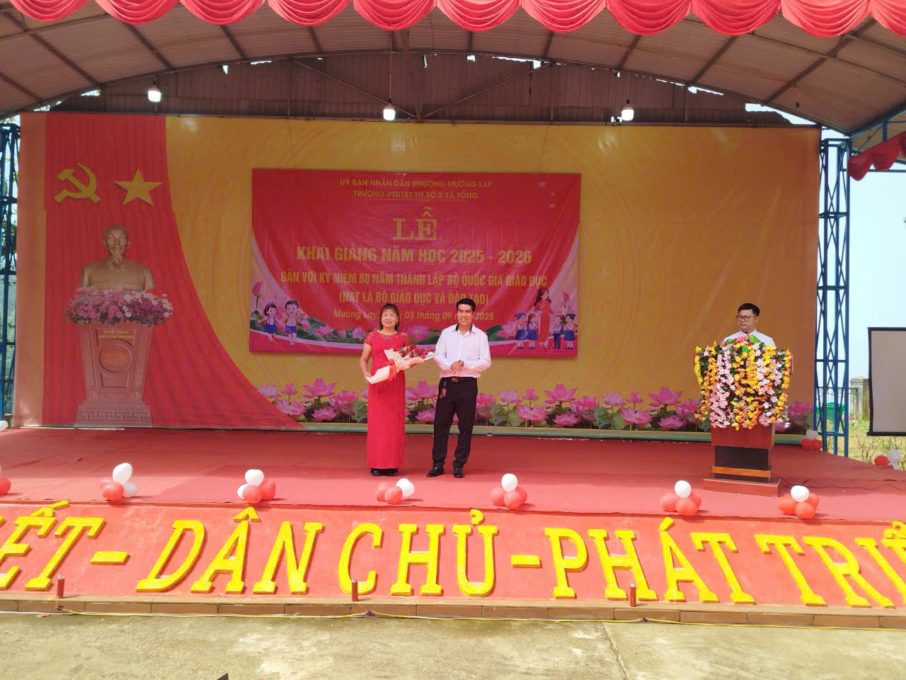 Về dự lễ khai giảng với nhà trường. Về phía lãnh đạo Đảng ủy HĐND-UBND-UBMTTQVN Phường Mường Lay có đồng chí Bùi Hải Bình – Bí thư Đảng ủy – Chủ tịch HĐND phường Mường Lay và đồng chí Phan Tiến Huy –UVBCH Đảng ủy – Chánh VP Đảng ủy phường cùng các cơ quan, doanh nghiệp của phường Mường Lay đã đến dự và động viên nhà Trường nhân ngày tựu trường.
