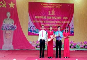 Để đánh giá nhìn nhận lại những thành công của thầy và trò nhà trường trong năm học 2024 – 2025 lãnh đạo đảng uỷ Phường đã biểu dương những cá nhân có thành tích đặc biệt xuất sắc. Đồng chí Nguyễn Thị Đức Bí thư Chi bộ, Hiệu trưởng nhà trường vinh dự được UBND tỉnh Điện Biên tặng bằng khen, thừa uỷ quyền của Chủ tịch UBND tỉnh, Đồng chí Bùi Hải Bình – Bí thư Đảng ủy – Chủ tịch HĐND phường tặng bằng khen cho đồng chí Nguyễn Thị Đức đây là thành tích cực kì xứng đáng vì những đóng góp của đồng chí cho sự nghiệp giáo dục của nhà trường.