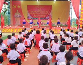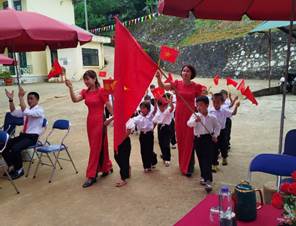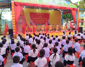 (Những tiết mục văn nghệ rất nhiều ý nghĩa đã đem đến bầu không khí vui tươi trong ngày hội toàn dân đưa trẻ đến trường)